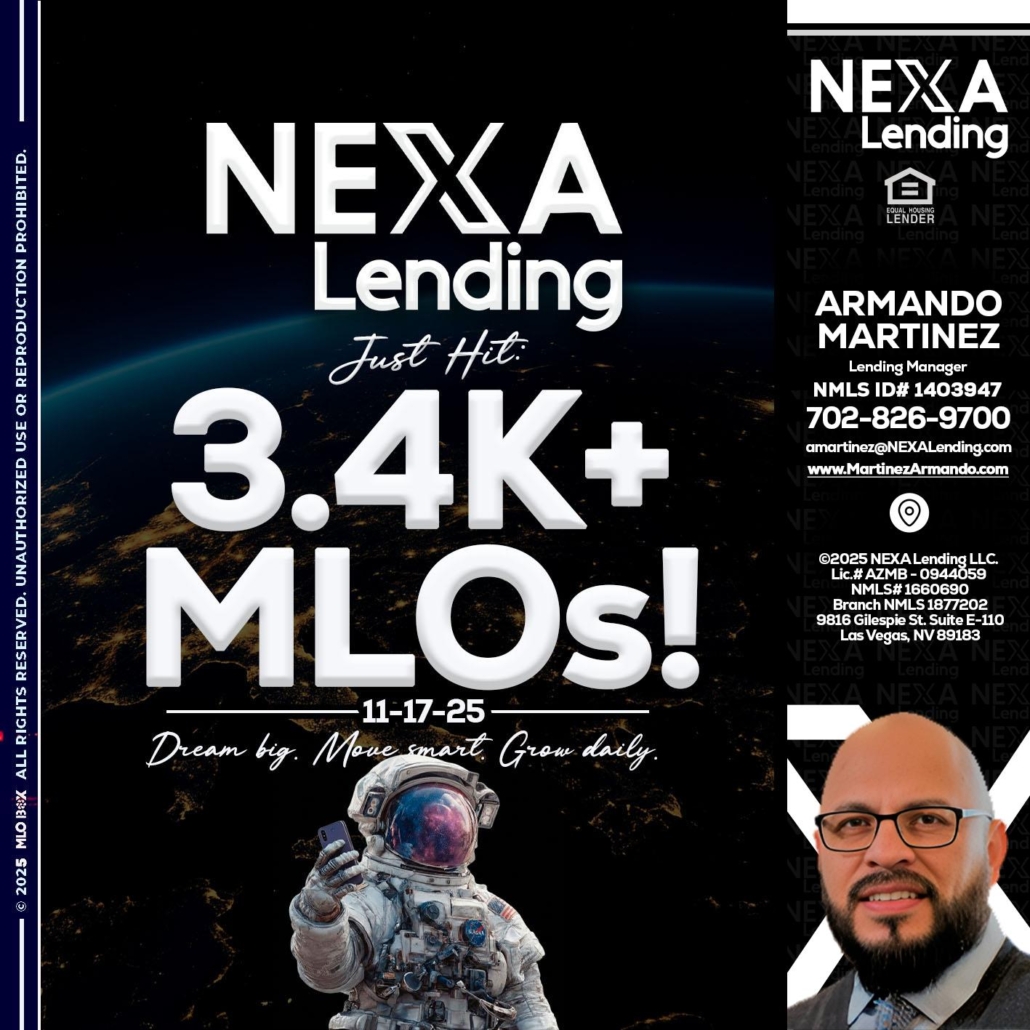 Hi, my name is Armando Martinez. I’m a Loan Officer with NEXA Mortgage LLC., offering personalized mortgage solutions, fast customized quotes, great rates and service with integrity.