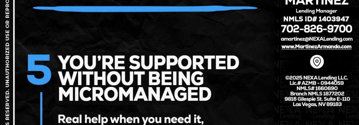Hi, my name is Armando Martinez. I’m a Loan Officer with NEXA Lending LLC., offering personalized mortgage solutions, fast customized quotes, great rates and service with integrity.