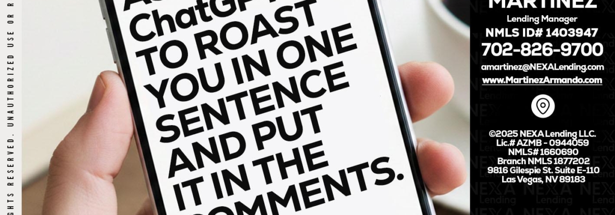 Hi, my name is Armando Martinez. I’m a Loan Officer with NEXA Lending LLC., offering personalized mortgage solutions, fast customized quotes, great rates and service with integrity.