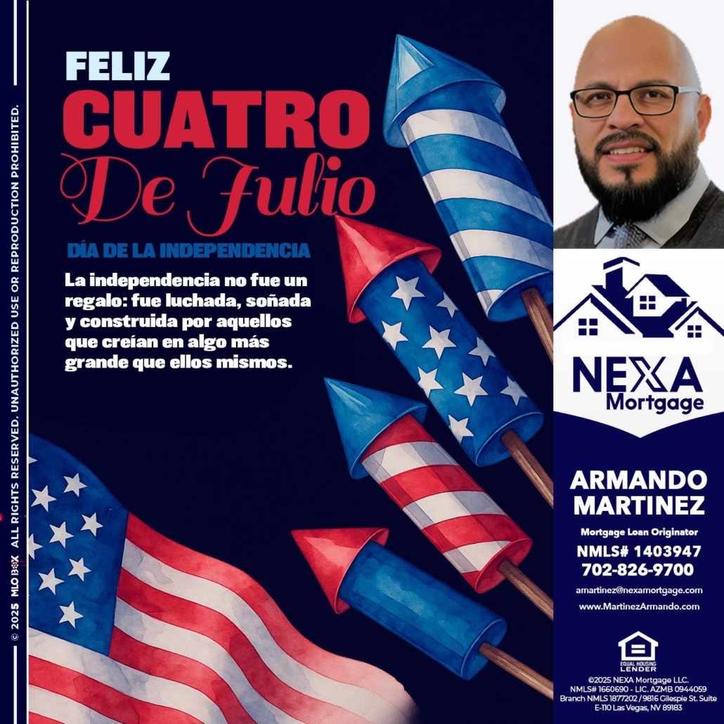 Hi, my name is Armando Martinez. I’m a Loan Officer with NEXA Mortgage LLC., offering personalized mortgage solutions, fast customized quotes, great rates and service with integrity.