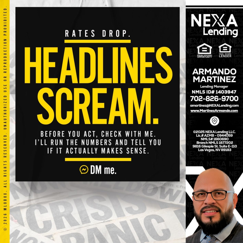Hi, my name is Armando Martinez. I’m a Loan Officer with NEXA Lending LLC., offering personalized mortgage solutions, fast customized quotes, great rates and service with integrity.