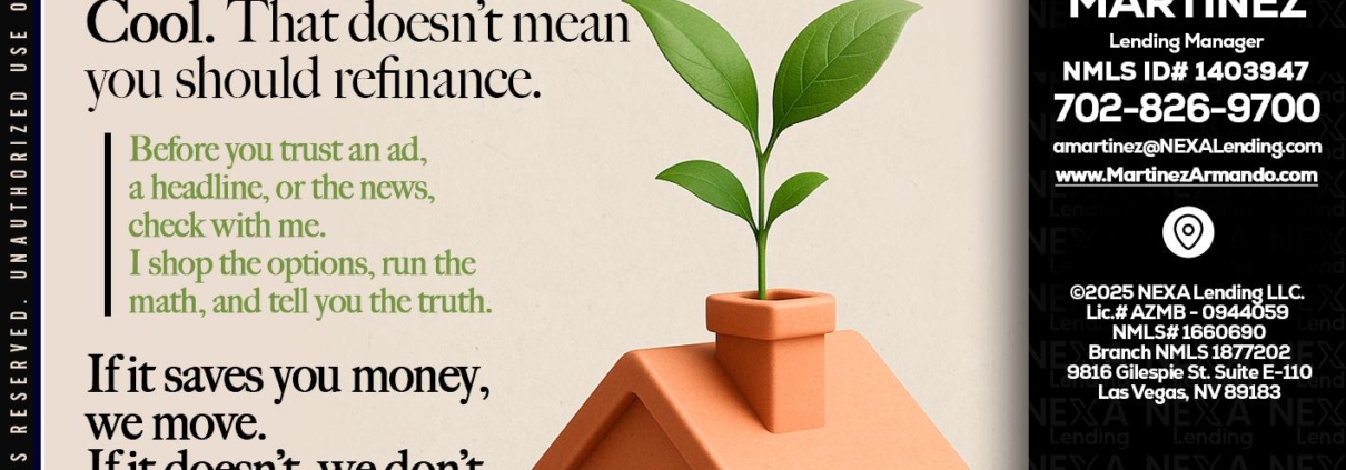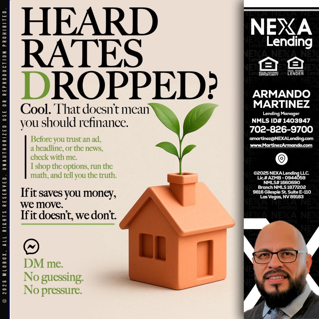 Hi, my name is Armando Martinez. I’m a Loan Officer with NEXA Lending LLC., offering personalized mortgage solutions, fast customized quotes, great rates and service with integrity.