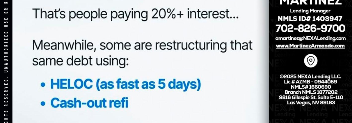JUST IN - Armando Martinez -Mortgage Loan OriginatorHi, my name is Armando Martinez. I’m a Loan Officer with NEXA Lending LLC., offering personalized mortgage solutions, fast customized quotes, great rates and service with integrity.