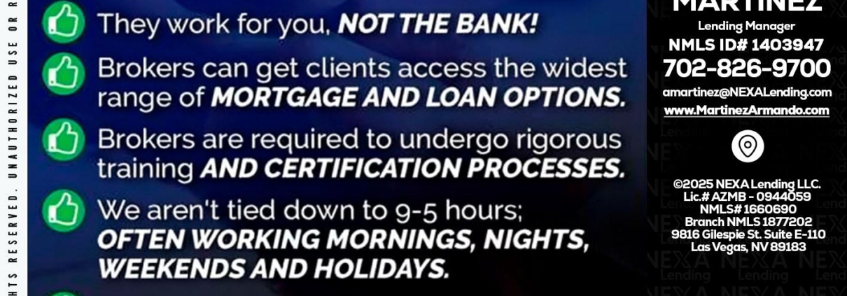 Hi, my name is Armando Martinez. I’m a Loan Officer with NEXA Lending LLC., offering personalized mortgage solutions, fast customized quotes, great rates and service with integrity.