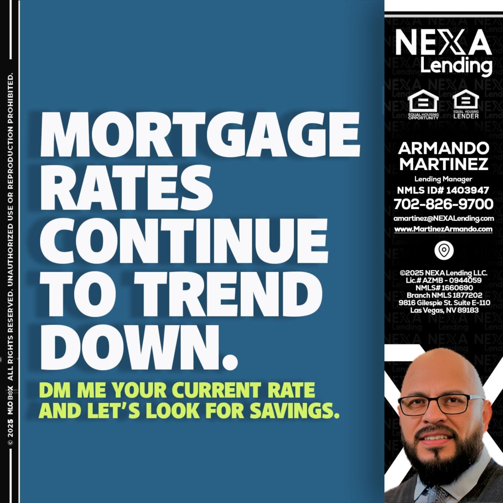 MORTGAGE RATES - Armando Martinez -Mortgage Loan OriginatorHi, my name is Armando Martinez. I’m a Loan Officer with NEXA Lending LLC., offering personalized mortgage solutions, fast customized quotes, great rates and service with integrity.