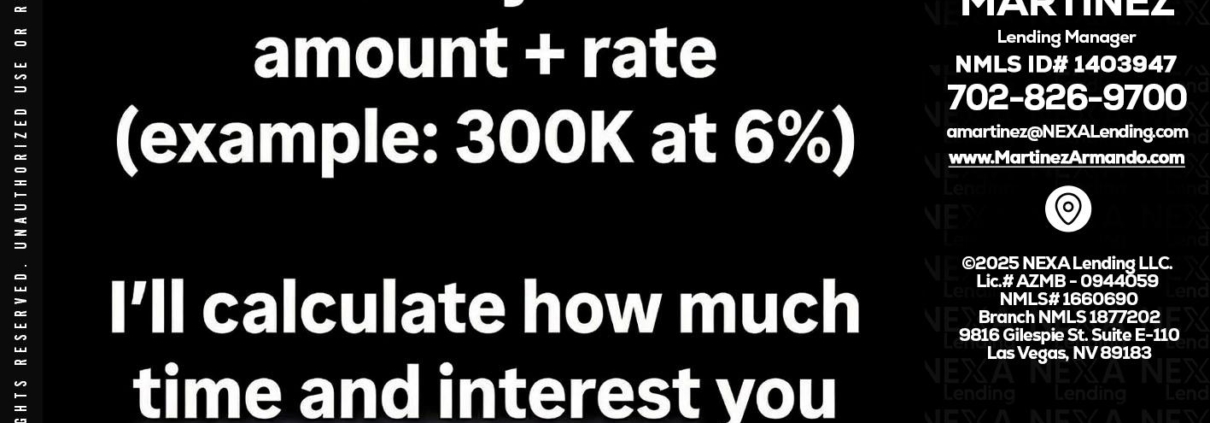Hi, my name is Armando Martinez. I’m a Loan Officer with NEXA Lending LLC., offering personalized mortgage solutions, fast customized quotes, great rates and service with integrity.