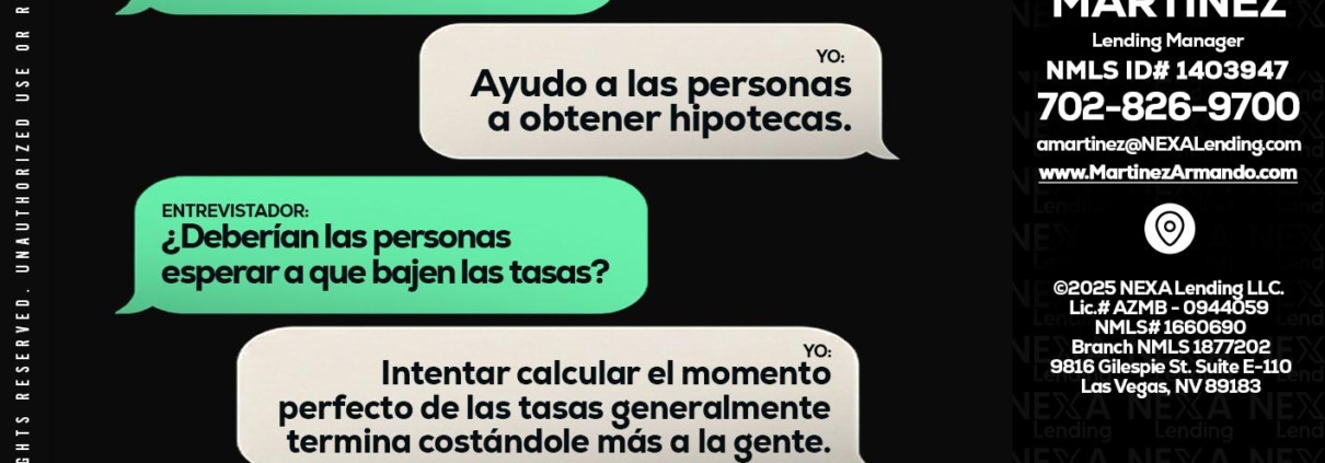 PREGUNTAS RAPIDAS - Armando Martinez -Mortgage Loan OriginatorHi, my name is Armando Martinez. I’m a Loan Officer with NEXA Lending LLC., offering personalized mortgage solutions, fast customized quotes, great rates and service with integrity.