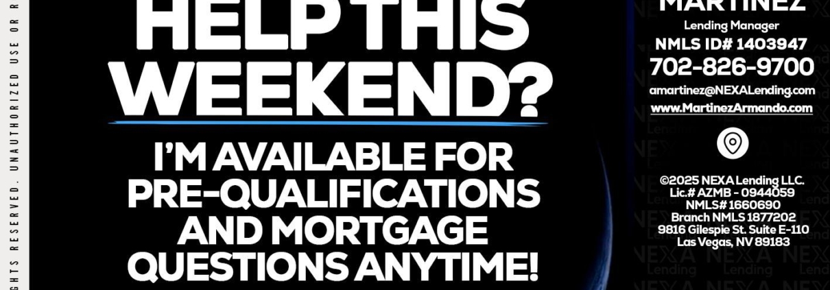 Hi, my name is Armando Martinez. I’m a Loan Officer with NEXA Lending LLC., offering personalized mortgage solutions, fast customized quotes, great rates and service with integrity.