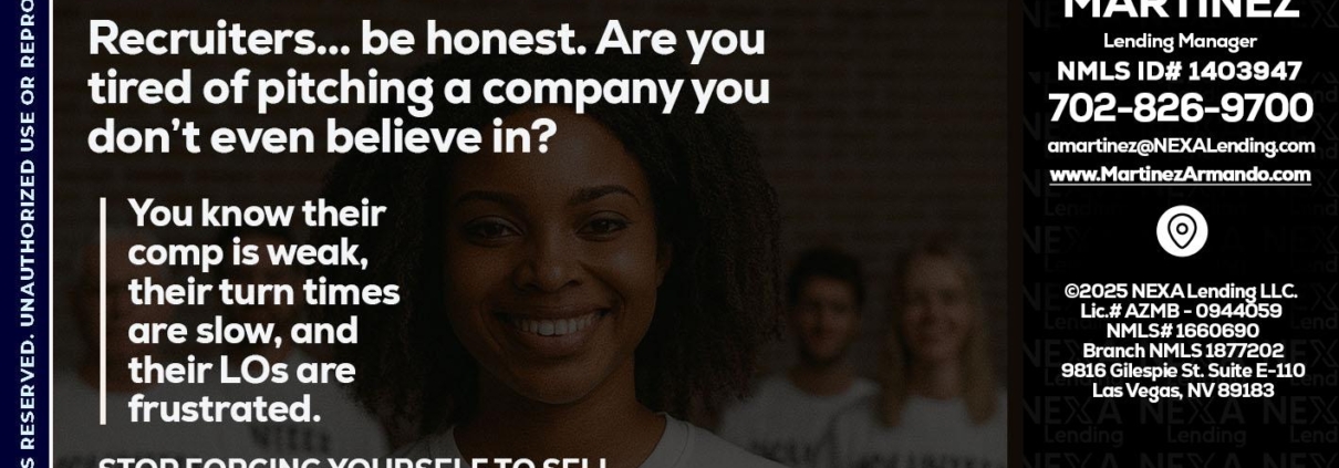 Hi, my name is Armando Martinez. I’m a Loan Officer with NEXA Mortgage LLC., offering personalized mortgage solutions, fast customized quotes, great rates and service with integrity.