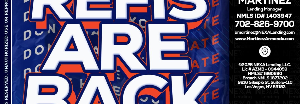 refis are back - Armando Martinez -Mortgage Loan OriginatorHi, my name is Armando Martinez. I’m a Loan Officer with NEXA Mortgage LLC., offering personalized mortgage solutions, fast customized quotes, great rates and service with integrity.