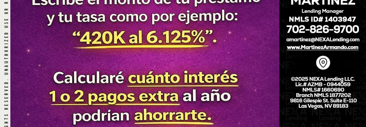 Hi, my name is Armando Martinez. I’m a Loan Officer with NEXA Lending LLC., offering personalized mortgage solutions, fast customized quotes, great rates and service with integrity.