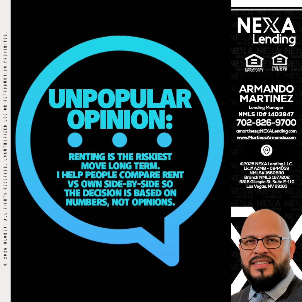 Hi, my name is Armando Martinez. I’m a Loan Officer with NEXA Lending LLC., offering personalized mortgage solutions, fast customized quotes, great rates and service with integrity.