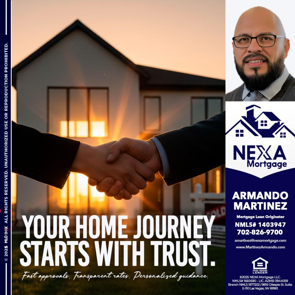 your home - Armando Martinez -Mortgage Loan OriginatorHi, my name is Armando Martinez. I’m a Loan Officer with NEXA Mortgage LLC., offering personalized mortgage solutions, fast customized quotes, great rates and service with integrity.